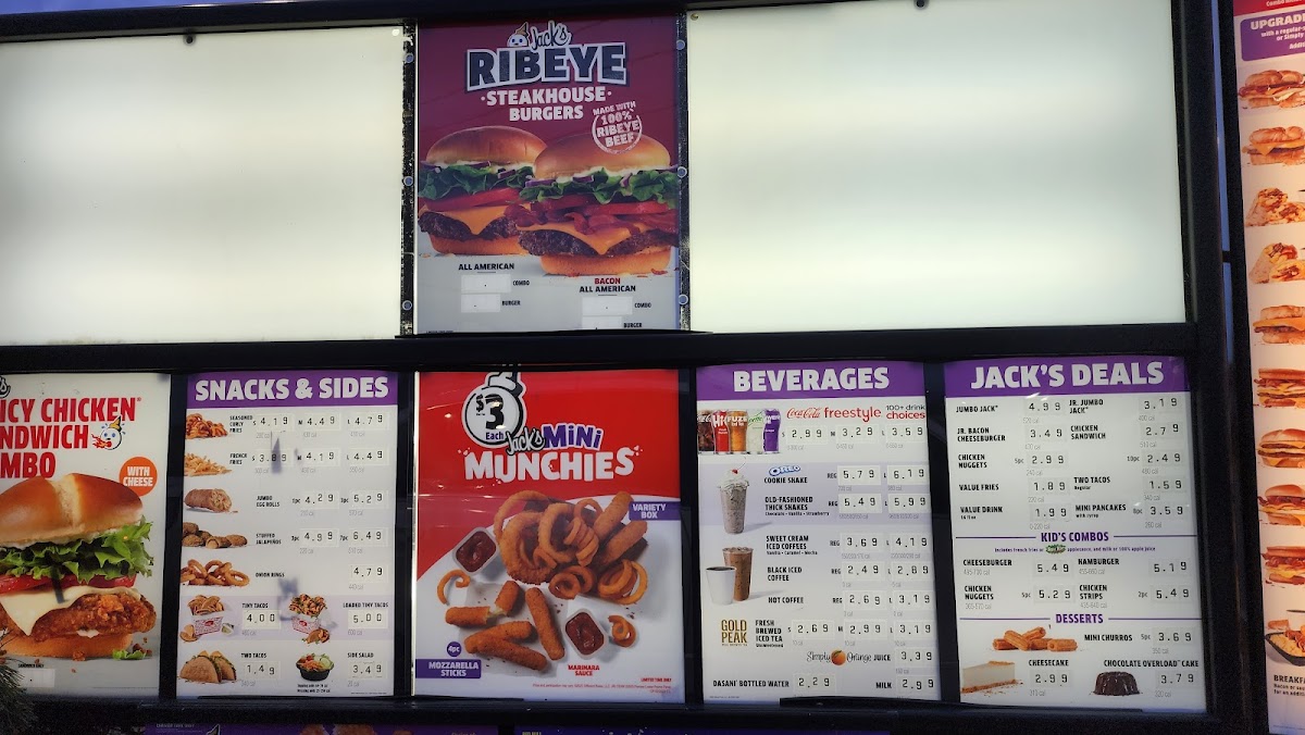 Dessert lovers will enjoy treats like the Mini Churros, creamy New York-style Cheesecake, and the decadent Chocolate Overload™ Cake, each crafted to offer the perfect sweet finish. Overall, Jack in the Box balances adventurous flavors with comforting favorites, making every visit a rewarding experience.